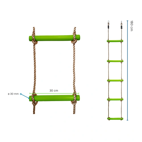 - Die Beweglichkeit von Kindern kennt keine Grenzen, und man muss ihnen die richtigen Möglichkeiten bieten, ihre Energie zu nutzen. Das Erklimmen einer Strickleiter mit 5 Kunststoffstäben wird das Erreichen dieses Ziels sicherlich erleichtern.
