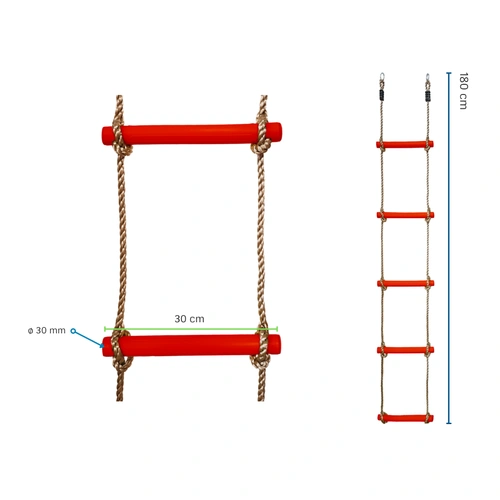 - Die Beweglichkeit von Kindern kennt keine Grenzen, und man muss ihnen die richtigen Möglichkeiten bieten, ihre Energie zu nutzen. Das Erklimmen einer Strickleiter mit 5 Kunststoffstäben wird das Erreichen dieses Ziels sicherlich erleichtern.