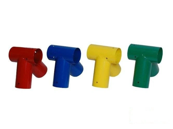 Rohrverbindungsstück für Rundholz, Durchmesser 100 mm für Schaukel. Sie sichern eine stabile und sichere Holzkonstruktion. Zwei Löcher für Schrauben verhindern das Verschieben beim schaukeln. Die Verbindungen sind in zwei Farben erhältlich, pulverbeschichtet. Produkt von JUST FUN garantiert Ihrem Kind einen sicheren Spaß beim Spielen!