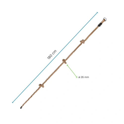 Die Mobilität der Kinder kennt keine Grenzen, und es ist notwendig, ihnen ausreichende Möglichkeiten zu bieten, ihre Energie zu verausgaben. Das Kletterseil mit 3 Knoten Ø26 mm wird dieses Ziel sicherlich erleichtern. Stabile Kunststoff- und Metallteile sorgen für ein sicheres Spiel. Dieses Seil eignet sich zum Beispiel ideal als Eingang zu einem Baumhaus oder zum Klettern im Kinderzimmer. Auf diese Weise können Kinder Körperbeherrschung, Kraft und Beweglichkeit trainieren. Mit ein wenig Übung werden alle viel Spaß haben!