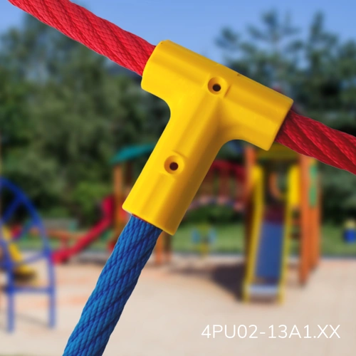 Erstellen Sie Ihr eigenes Kletternetz oder ein anderes Linarium. Verwenden Sie dazu den absolut zuverlässigen Ø16 mm T-Verbinder ECO für armiertes Seil. Es verbindet zwei Kabel senkrecht zueinander auf robuste, sichere und schnelle Weise.