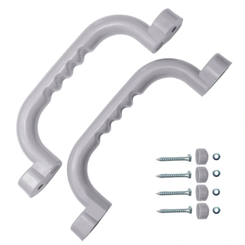Ein Satz Handgriffe aus Kunststoff, erhältlich in 4 Farben, Abmessung 250 x 75 mm. Ideal für Spielturm, Kletterturm und andere Holzkonstruktionen, auch für Hochbett. Sie erleichtern deinem Kind das Einstegen und Klettern. Der Satz enthält zwei Handgriffe, zwei Schrauben und Abdeckkappen. Produkt von JUST FUN garantiert Ihrem Kind einen sicheren Spaß beim Spielen!